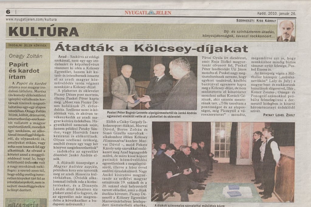 2010 január 22-én átadtuk a 2009-es év Kölcsey-díjait.
