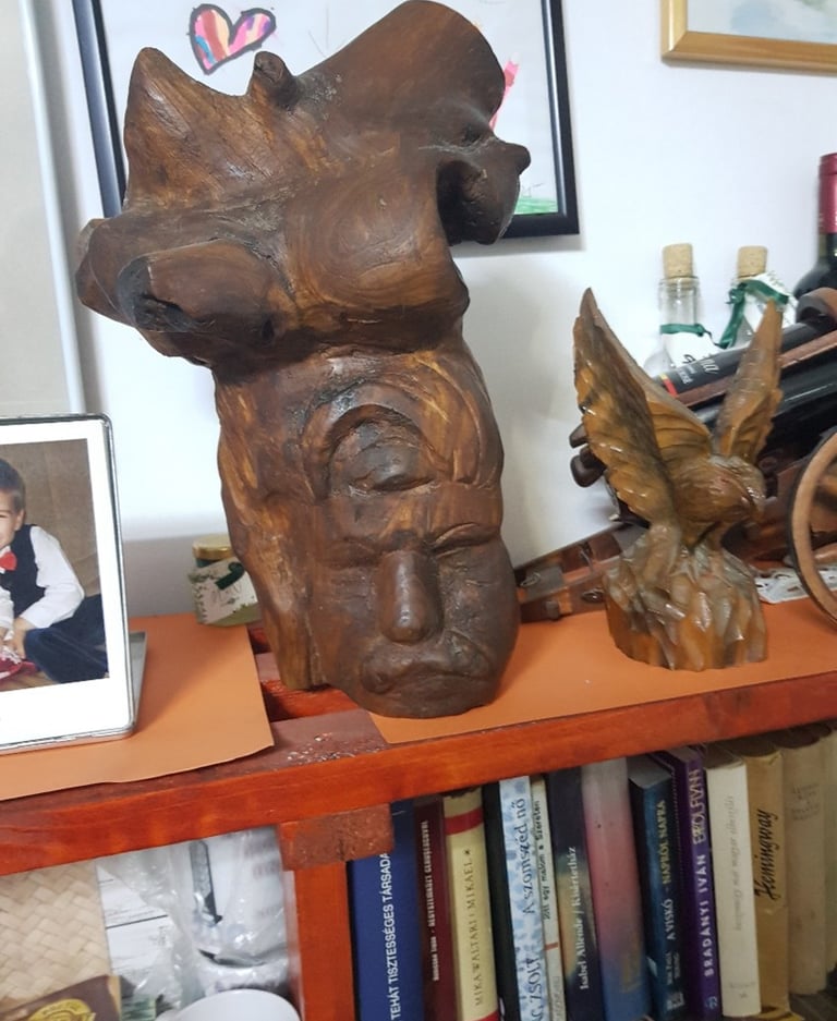 Ezt a szobrot Kisvárdai Lajos, a pécskai fafaragó készítette rólam. Amikor elkészült, még jobban hasonlított rám, mint talán ma.